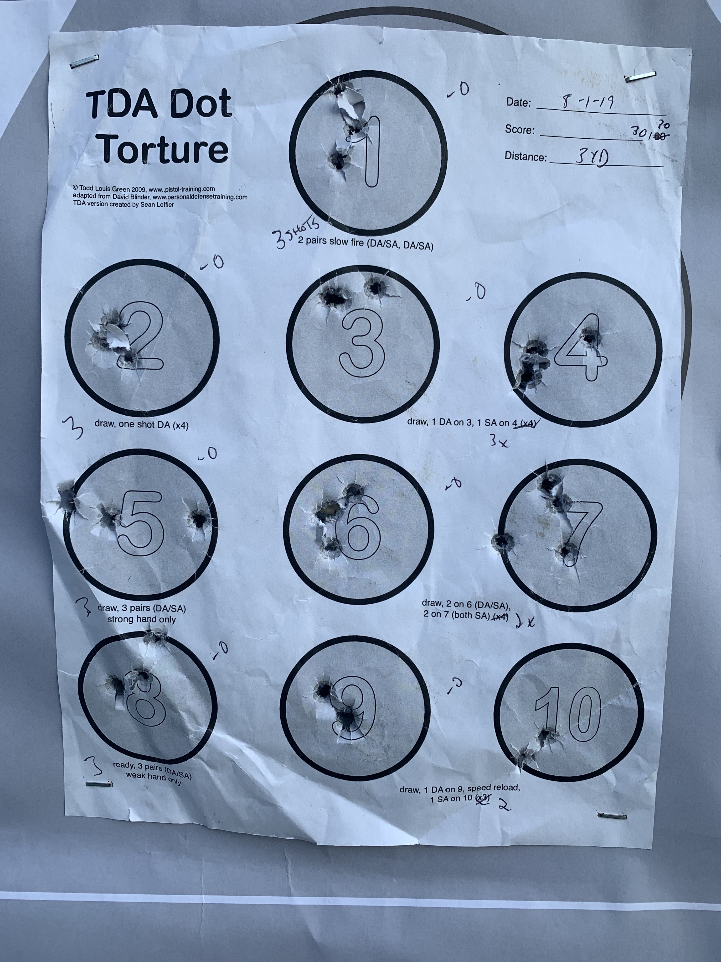 After the Casino Drill I shot a modified Dot Torture. I reduced the number of rounds on each dot so that I only shot 30 shots. From 3 yards I was 30/30.