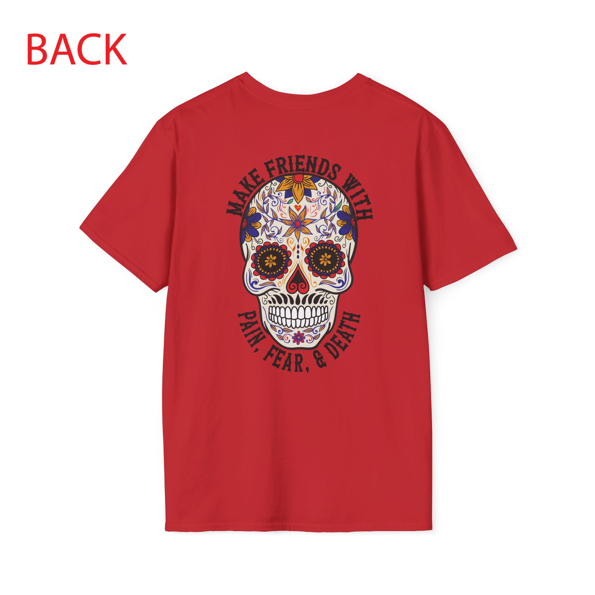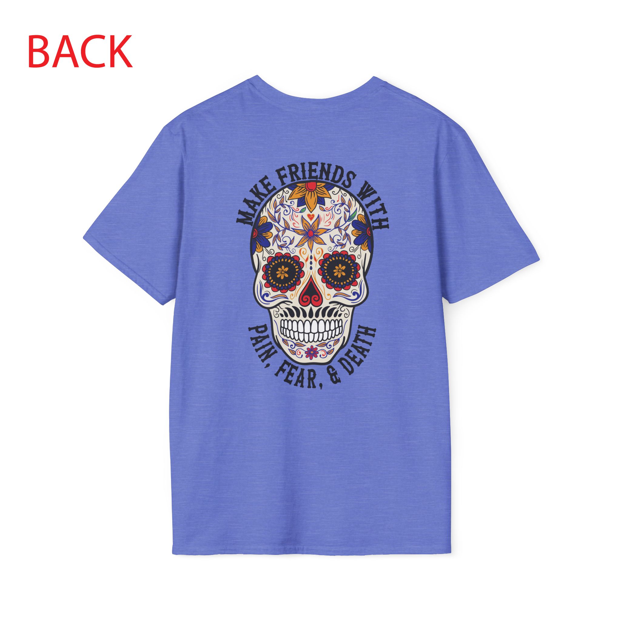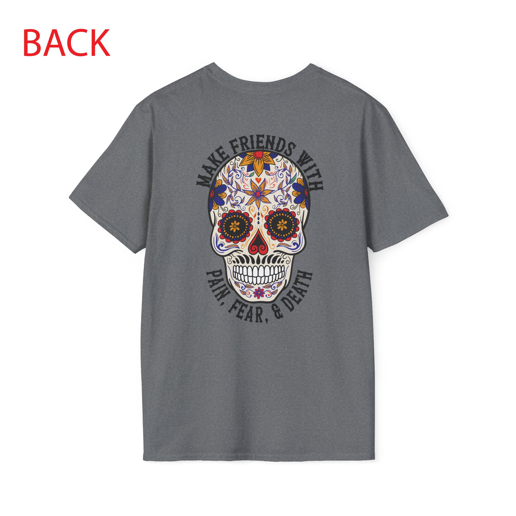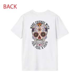 Rock this at the range, the gym, or that sketchy gas station at 2 AM (hey, we don’t judge your snack runs). The sugar skull design is equal parts badass and old-school cool – think Day of the Dead meets The Matrix. It’s deep, it’s dope, and it definitely beats another boring logo tee.