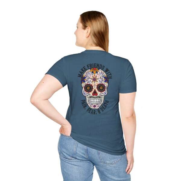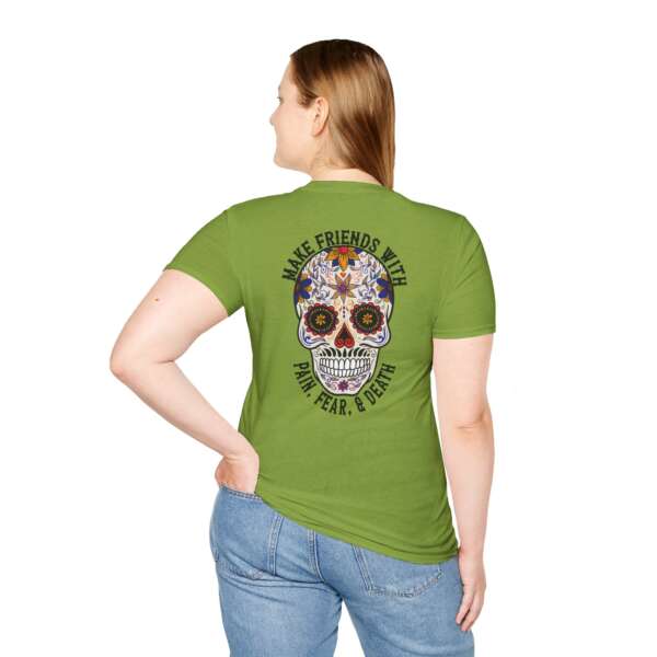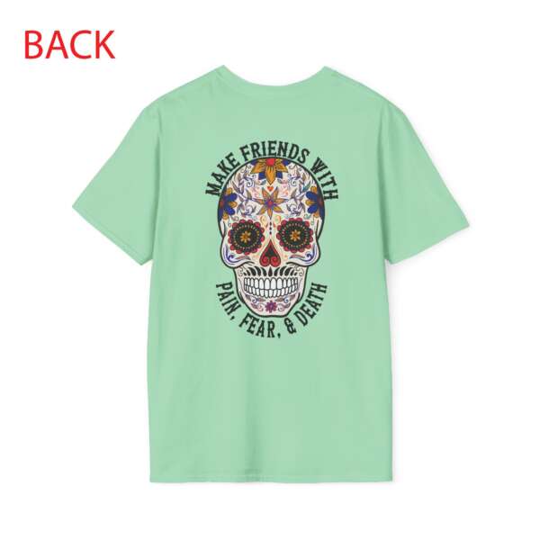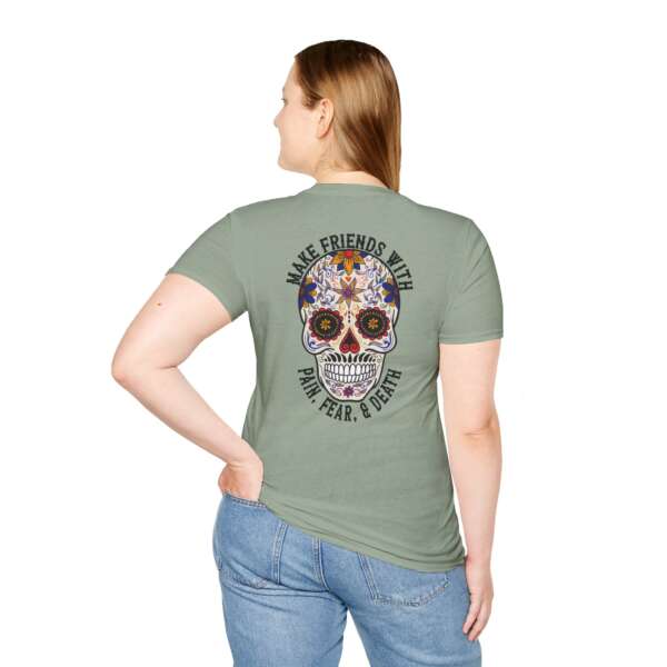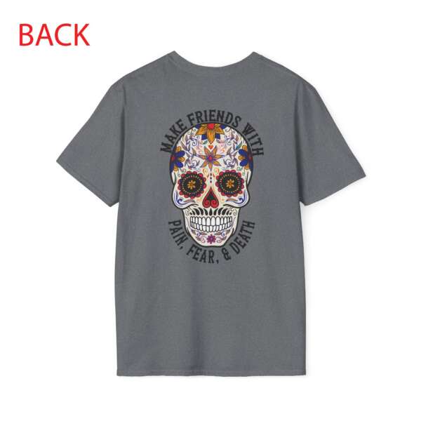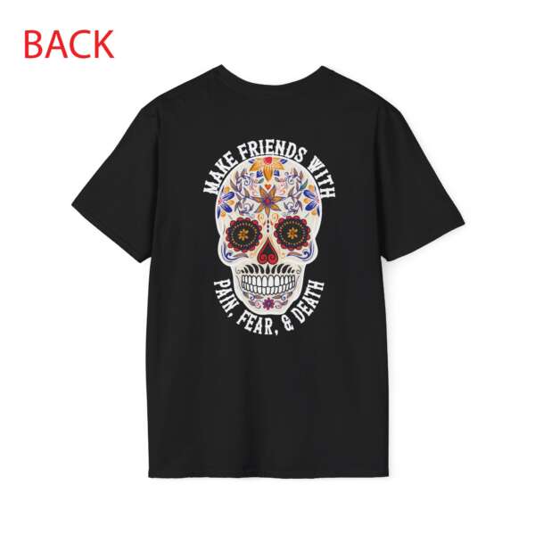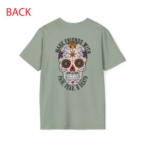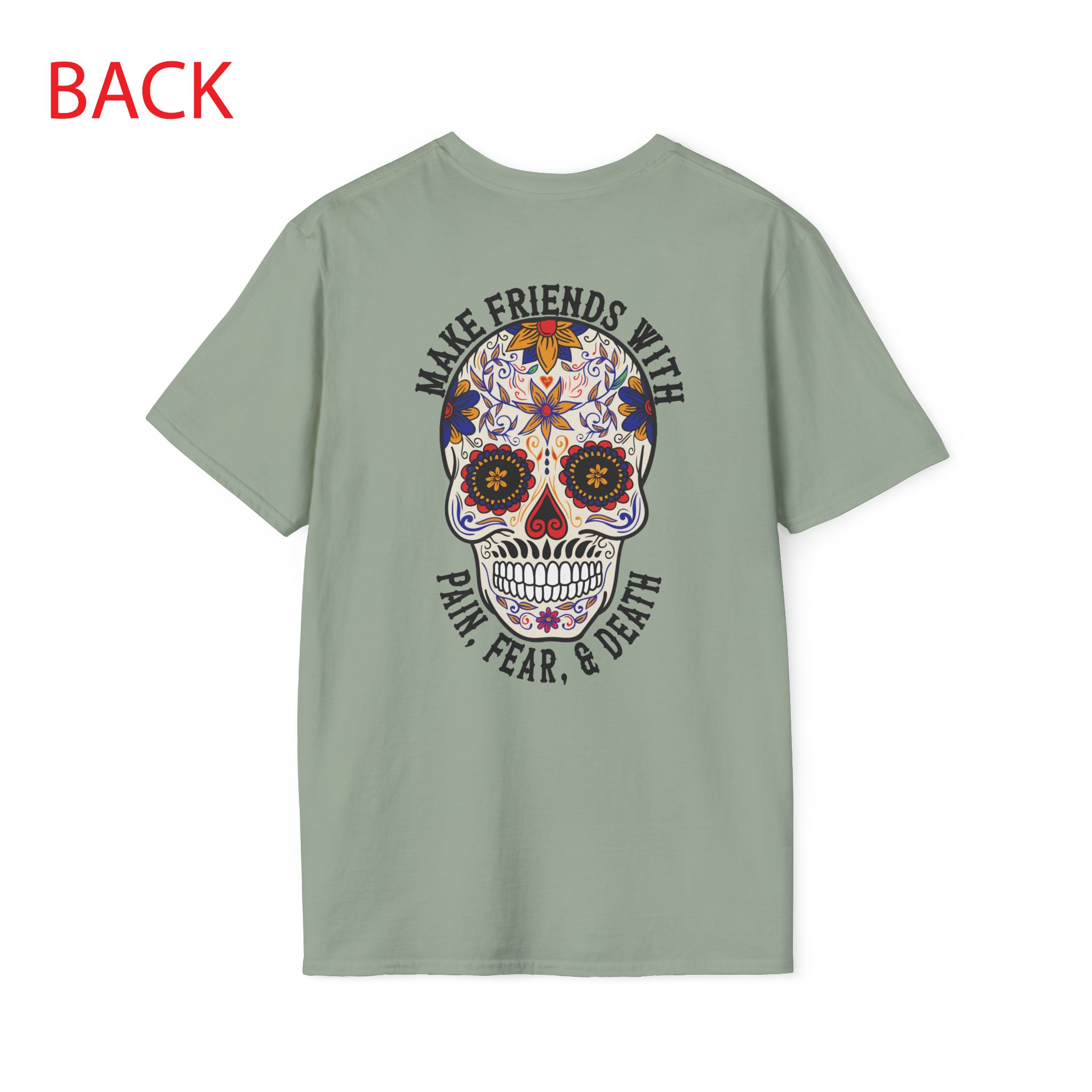 Rock this at the range, the gym, or that sketchy gas station at 2 AM (hey, we don’t judge your snack runs). The sugar skull design is equal parts badass and old-school cool – think Day of the Dead meets The Matrix. It’s deep, it’s dope, and it definitely beats another boring logo tee.